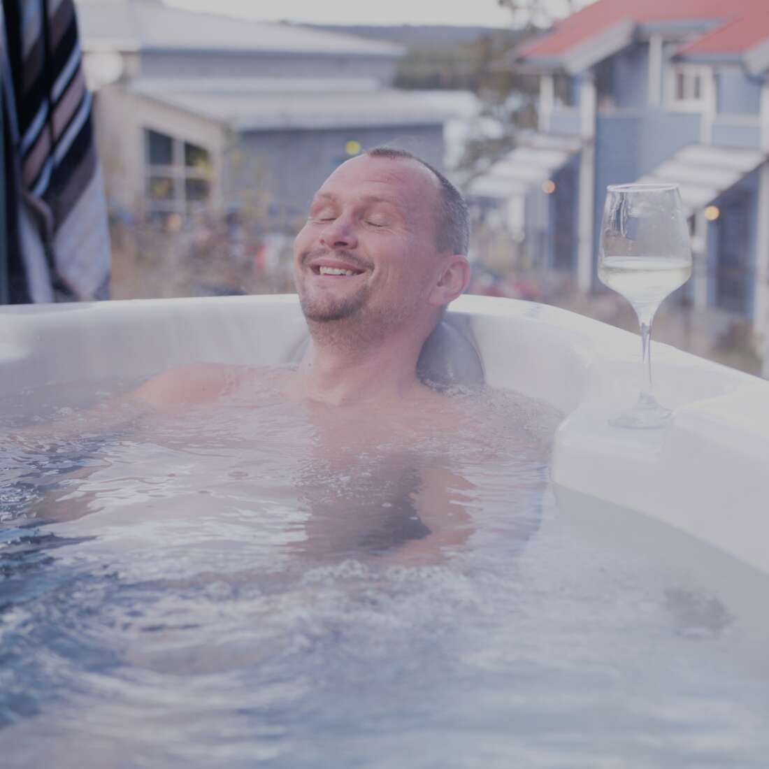 Slapp av i en toppmoderne jacuzzi med lys og bobler, også denne med fantastisk utsikt.